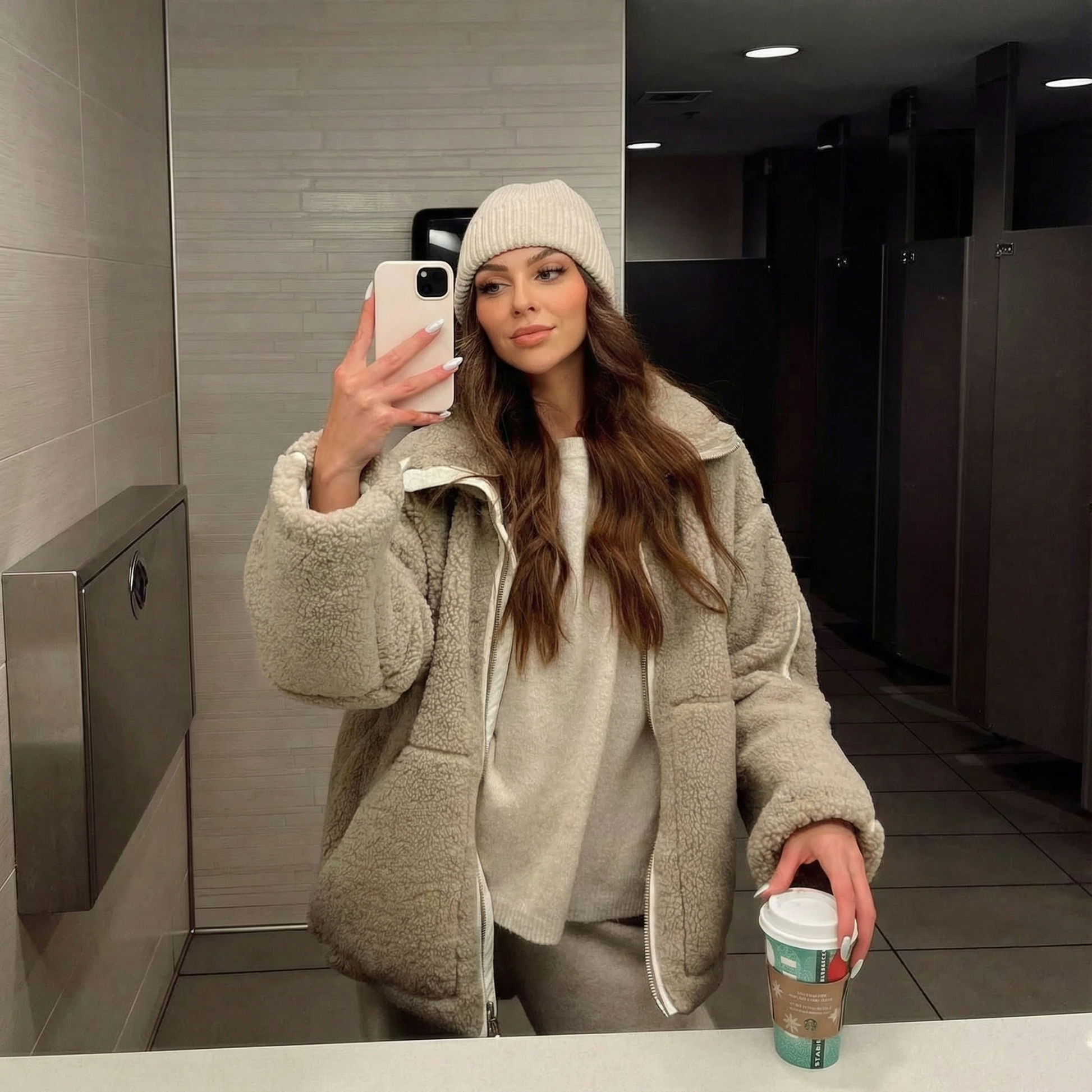 Esta chaqueta estilo borrego ofrece la combinación perfecta entre comodidad, calidez y estilo moderno. Su textura suave y mullida envuelve el cuerpo con una sensación acogedora ideal para los días fríos, mientras que su diseño relajado aporta un aire casual chic que funciona tanto para looks urbanos como para estilismos más minimalistas. Es una prenda pensada para quienes buscan confort sin renunciar a una estética cuidada.