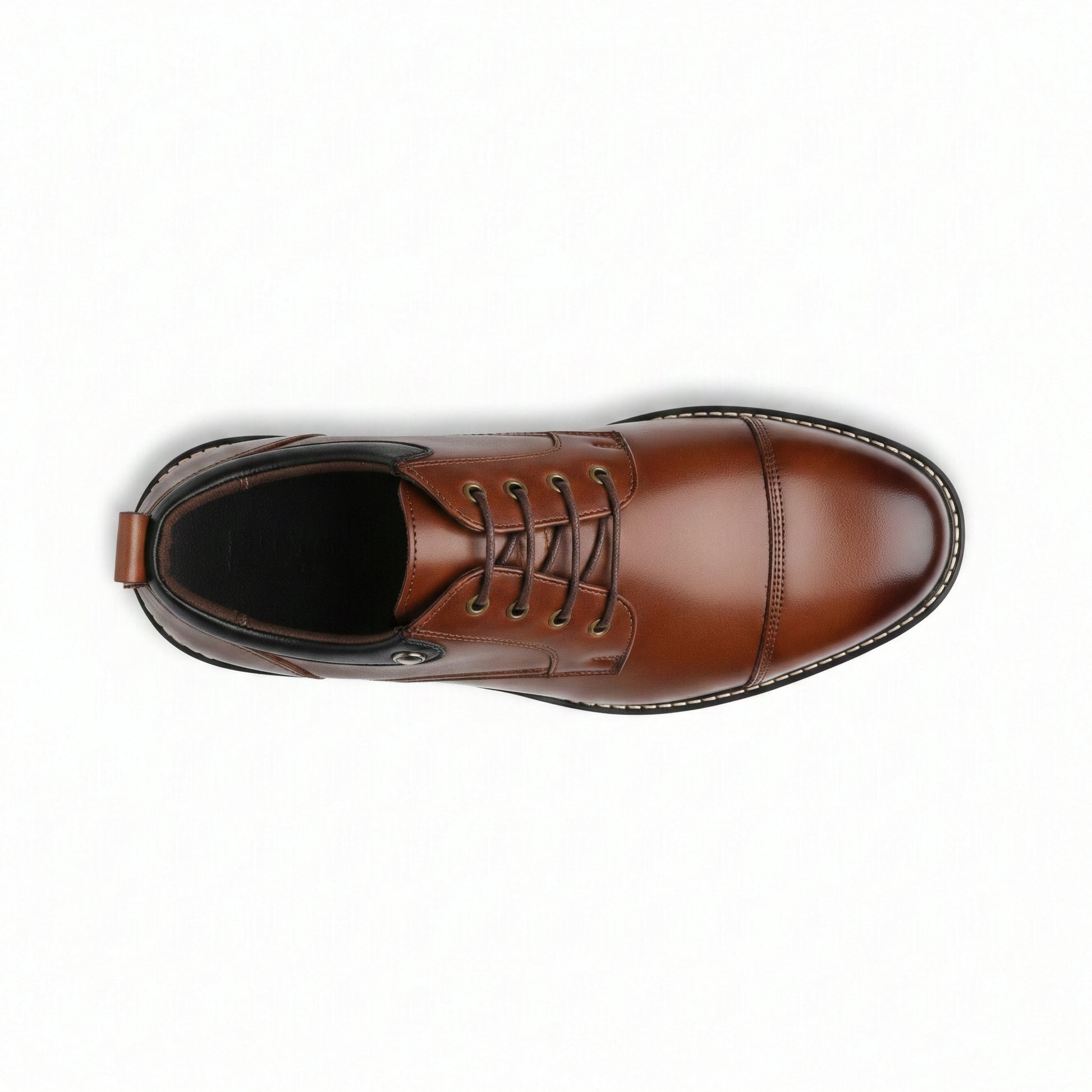 Los zapatos Melver combinan la sofisticación del calzado tradicional con detalles contemporáneos que marcan la diferencia. Su acabado en marrón intenso aporta distinción y versatilidad, mientras que el contraste en el cuello y la suela añade un matiz moderno y dinámico.